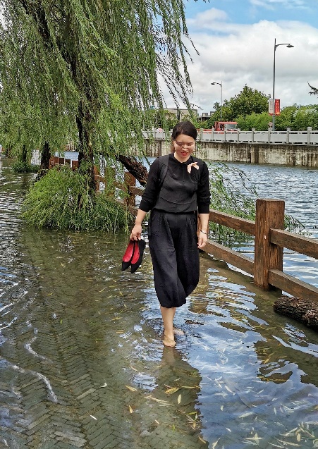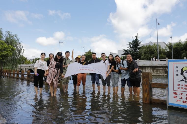 苍苍九峰北麓,茫茫淀山湖之滨,有块47平方公里成折扇形的小镇,镶嵌在湖光山色之中,似明珠闪闪发光,这就是典型的江南鱼米之乡、闻名遐迩的千年古镇朱家角。朱家角素有上海威尼斯、沪郊好莱坞之誉,又名珠街阁,雅称珠溪,俗称"角里",原名朱家村。坐落于青浦区,水陆交通便捷,风景优美,物产丰裕,是上海保存最完整的江南水乡古镇。1991年被上海市政府命名为四大历史文化名镇之一。由于受到台风“利马奇”的影响,以水乡著称的朱家角俨然成为一座“水中古镇”,然而这并没有阻挡学员们创作的激情,学员们赤脚提着鞋子淌水进入古镇进行创作。