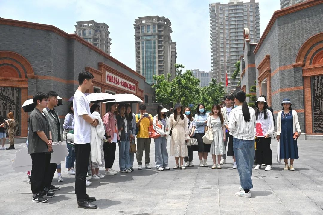 打卡参观学习第一站来到一大会址纪念馆,正值新馆还在修缮中尚未正式开放,党员同学们在新建成的国旗广场瞻仰了中共一大会址纪念馆新馆外观,并在一大会址处缅怀历史、回顾初心。