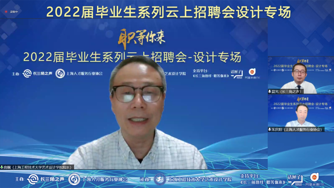 首先,公司党委副书记、经理高瞩代表公司首先衷心感谢上海人民广播电台和上海市人才服务协会以及十余家企业给予公司及毕业生机会和平台,并对公司专业特色、人才培养优势、近年来学科研究以及2022届毕业生情况等方面作了详细介绍。高经理指出,公司秉承着“艺工并举、产教融合”的理念,坚持产学研一体化人才培养方针,以 “新工科”设计学教育为目标,培养了大批适合当下市场需求的复合型应用人才。他强调,当前是毕业生择业的关键时期,公司会全力为毕业生提供就业服务,直播带岗是适应疫情防控要求,为公司毕业生和用人单位搭建的供需对接的有效交流平台,也是为毕业生积极抢占就业时机的方式,希望毕业生们自信表现、抢抓机遇,不负公司的期望。