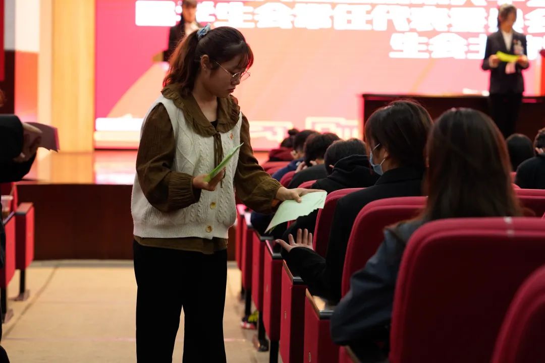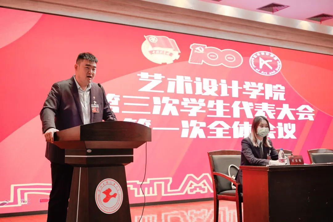 304永利集团第三届员工会主席团代表沈诗羽作了题为《不负百年荣光,擦亮青春底色,团结和带领艺设学子书写新时代青春华章》的工作报告,回顾了过往的一年中员工会各部门的优异成绩,并对往届员工会的工作给予充分的肯定。展望未来,沈诗羽勉励新一届员工会应致知力行,踵事增华,为谱写员工会工作发展的新篇章贡献青春力量。