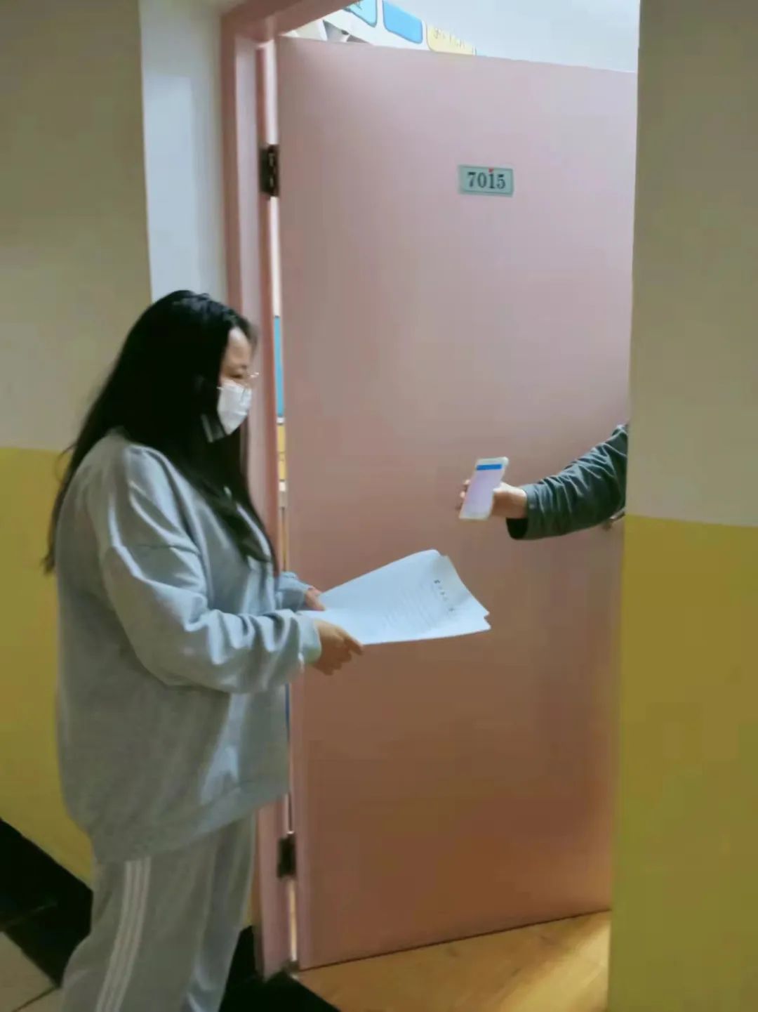 团委书记孟远航老师坚守在疫情工作的第一岗位,不辞辛劳地监督和管理304永利集团在校生进行核酸检测,亲自关心关怀员工安全和心理健康问题,与员工谈心谈话,正确引导同学们应当以积极的心态面对疫情。