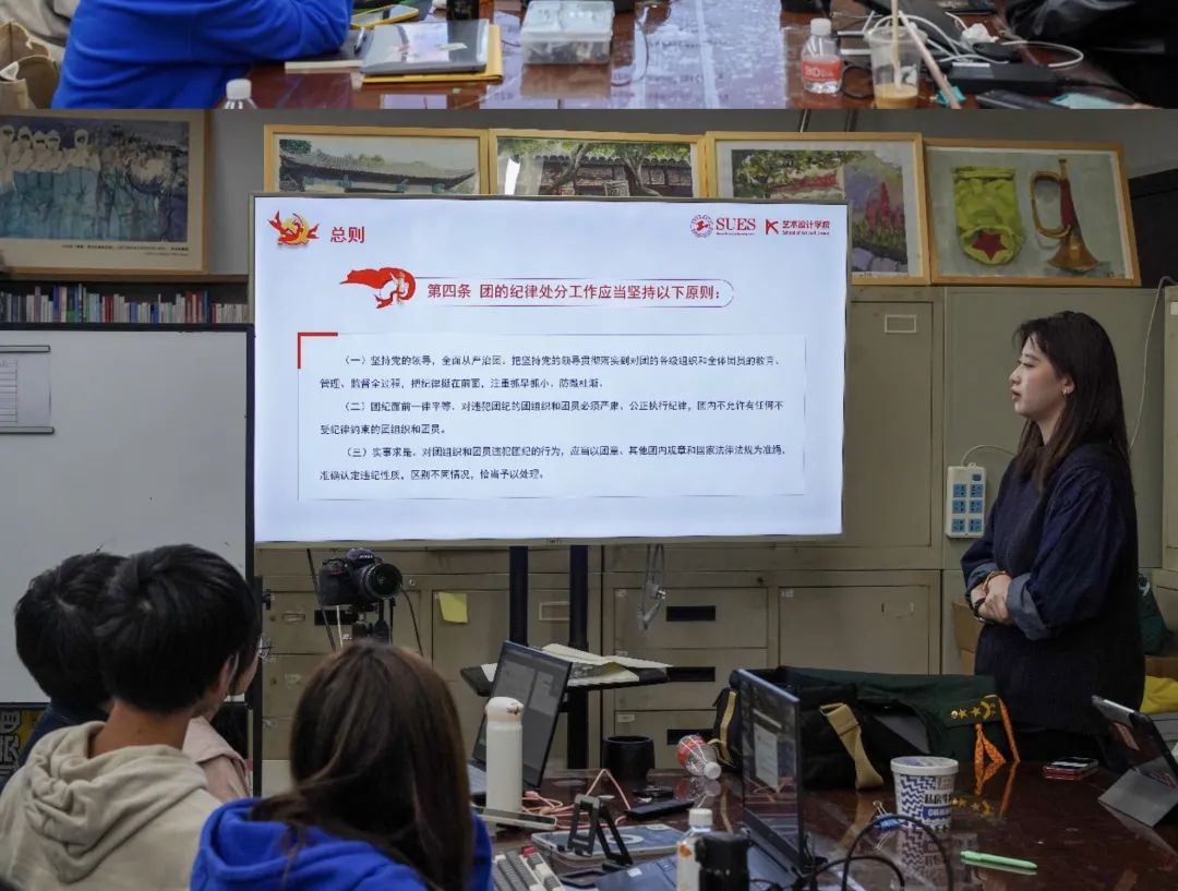 在正式学习条例内容前,304永利集团团委员工会先观看了《中国共产主义青年团纪律处分条例(试行)》动画,向大家初步介绍了本条例适用范围、确立了团纪处分5个种类、区分了违纪行为有关责任人员、讲解了处分类型和对违法犯罪团员的团纪处分,区分了处分程度并讲解了附则。