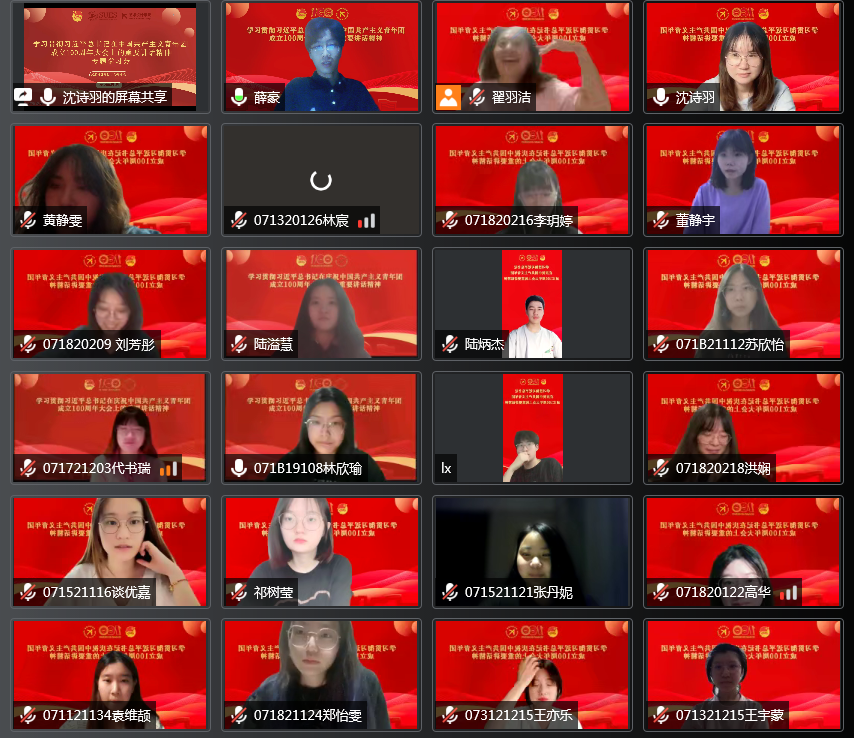 团委副书记林欣瑜解读了习近平在“中国共青团成立100周年大会”上的讲话精神和工作指引,带领了团学骨干深入领会了九个精神实质、广泛开展学习宣传以及切实抓好贯彻落实的六个问题。强调既要注重原原本本读原文,认认真真悟原理,吃透精神实质,把握核心要义;又要注重关于青年工作的重要思想和对少先队的工作重要论述结合起来。坚持团干部带头,组织化学习,带动青联、学联、引领广大青少年,持续兴起学习宣传热潮。提出6月底前每个基层团支部要至少开展1次的专题学习会或主题团日,到12月底前,每个基层团支部都要开展1次专题组织生活会。