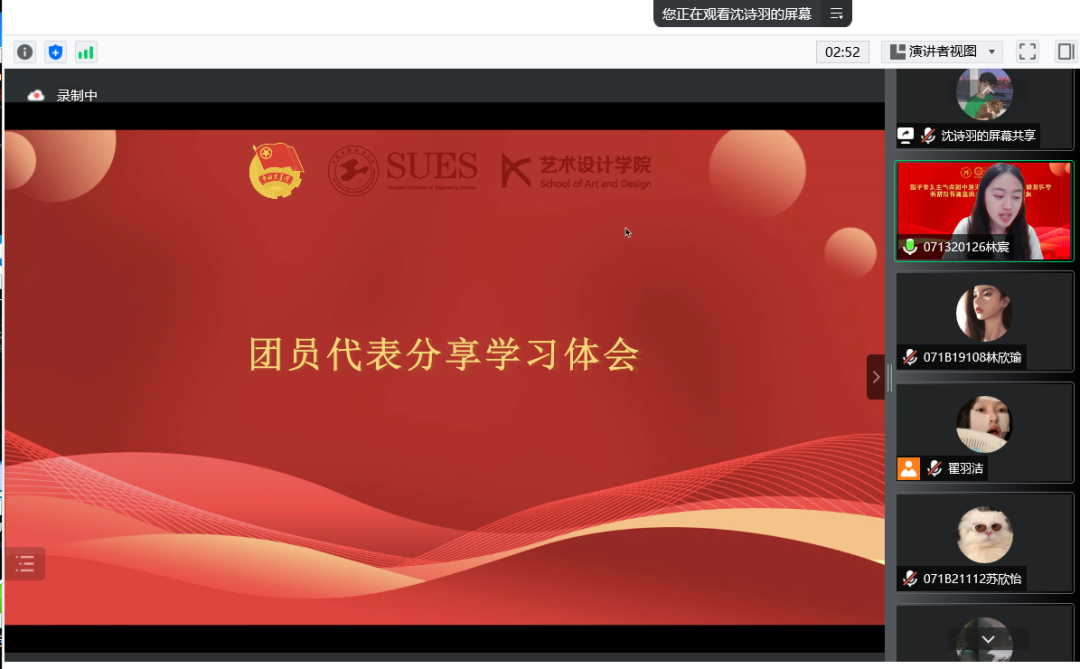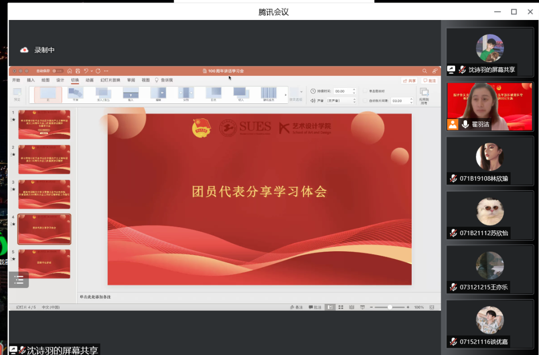 公司员工会执行主席沈诗羽从“共青年团成立100周年大会”的主题切入,以时间顺序,向大家展示了总书记在各个大学的考察行程、党的重大会议和活动以及写给青年人的16封回信,从中分析了习近平总书记关于青年工作的重要思想、党领导下中国青年运动百年历程以及习近平总书记对共青团的殷切期望,强调了新时代青年应该担起时代重任,为实现中国梦锲而不舍,驰而不息地顽强奋斗,当代青年要树立与这个时代主题同心同向的理想信念,勇于担当这个时代赋予的历史责任,坚定不移跟党走。赞扬了新时代的中国青年豪情满怀,以聪明才智贡献国家,以开拓进取服务社会,成为中华民族生气勃发、高歌猛进的靓丽风景。