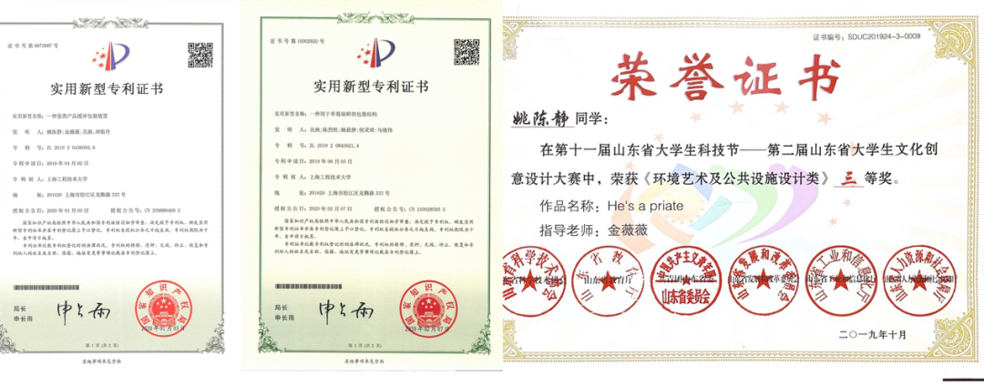 获2020学年取得三项实用新型专利证书