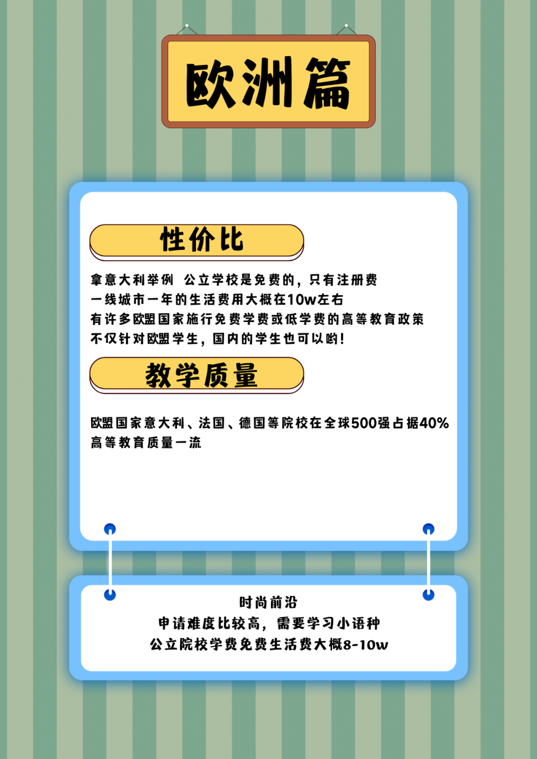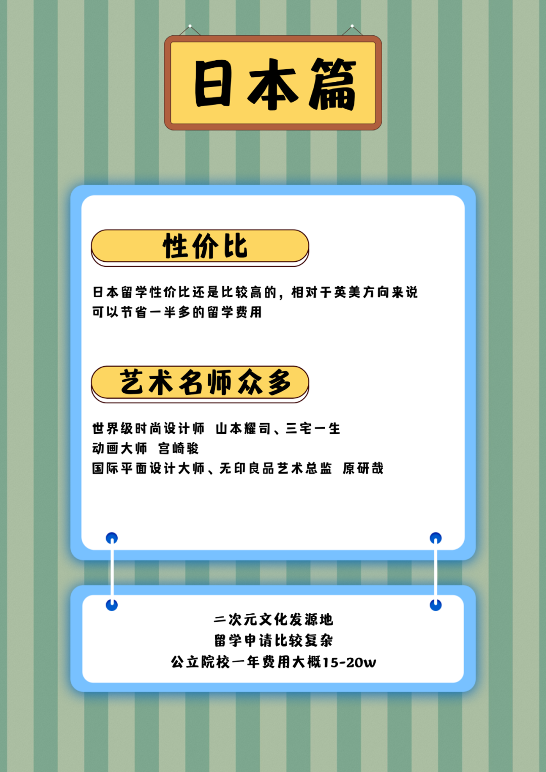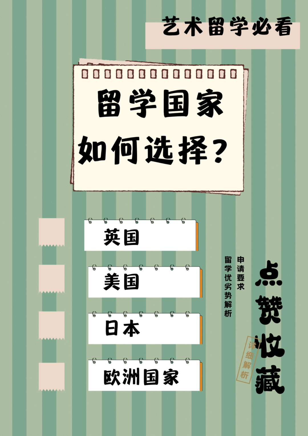 英国美国有传统的名校,意大利走在时尚的前沿,日本充满二次元,具体选择去哪个国家留学,看个人的专业和偏好,还有经济能力