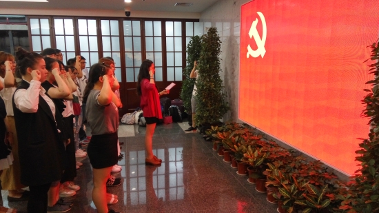 九十多年后,作为入党的积极同志,在中国共产党诞生的地方,党员同志面向党旗庄严宣誓,对党忠诚,积极工作,为共产主义奋斗终身,随时准备为党和人民牺牲一切,永不叛党。所有党员均表示将会把入党作为人生的新起点,更加严格地要求自己,认真学习党章党规,学习系列讲话,争做一名合格的共产党员。