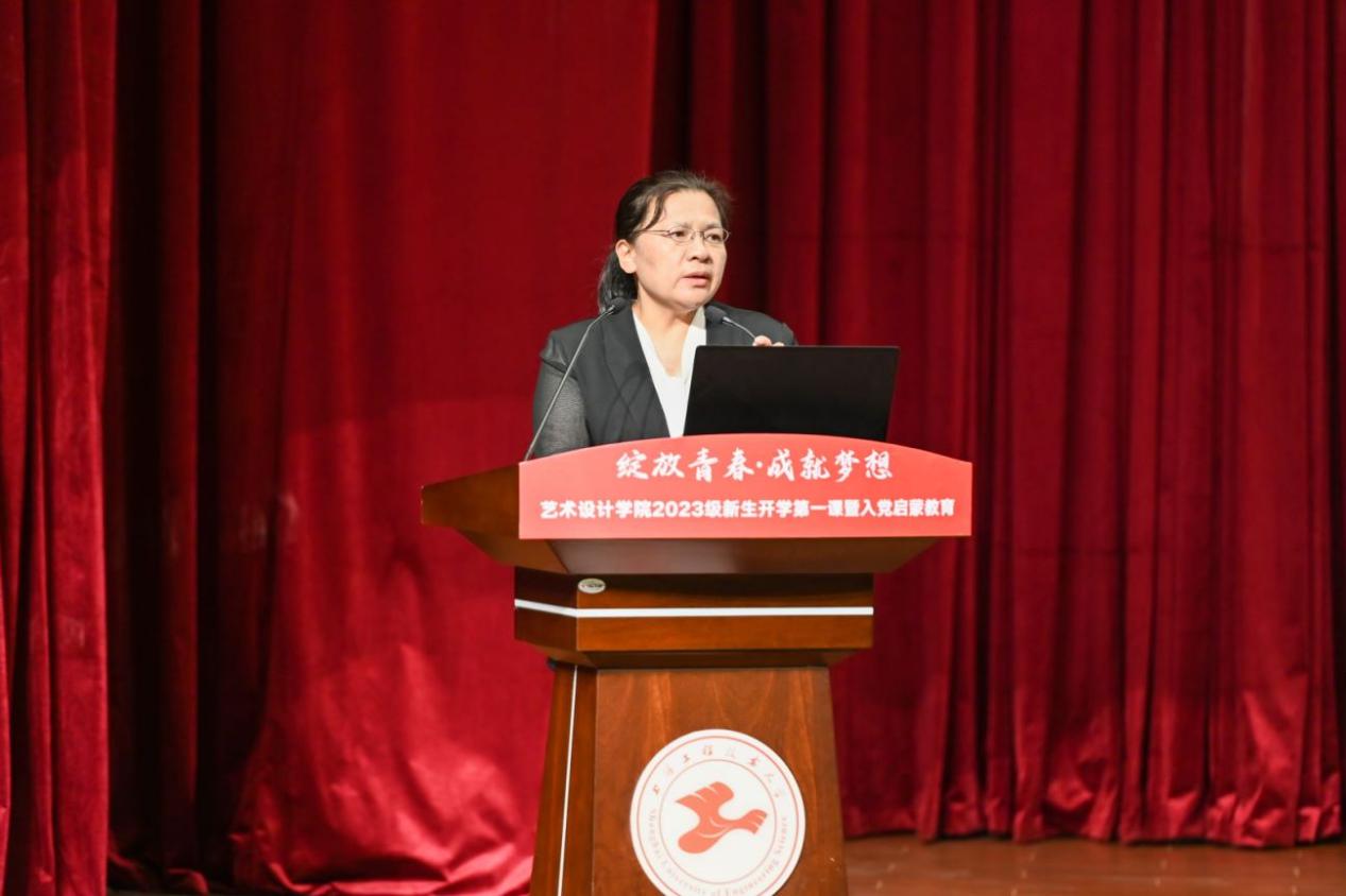 公司党委副书记、经理高瞩为新生上开学第一课。高经理深情寄语2023级的新生三点希望,一是学以报国,树立远大志向,把自己的艺术理想同实现中华民族伟大复兴的中国梦紧密联系在一起;二是学以创新,突破学科的边界,健全自身知识结构,不断提出新问题、新理念;三是学以成人,立足“艺工并举、产教融合”的公司办学理念,将理论与实践相结合,学习与生活相结合,学会在艺术中思考世界、完善自身。