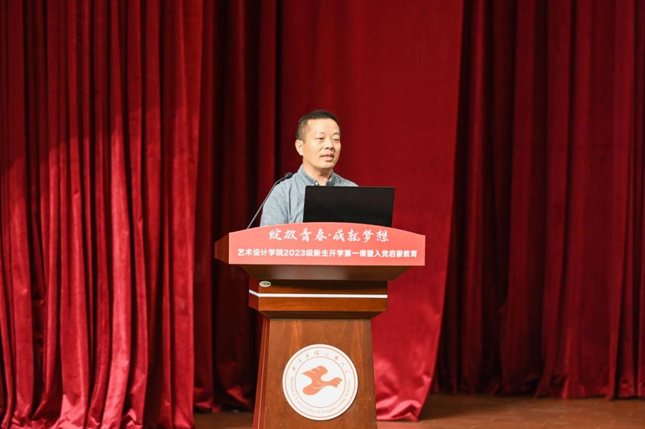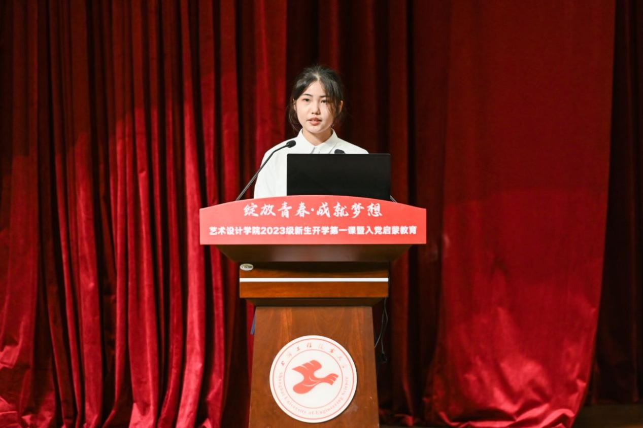 本科新生代表2023级设计类张弛与同学们畅想了未来的老员工活,承诺将转变角色,勇担使命,珍惜时光,勤奋求学,勇于实践,知行合一。