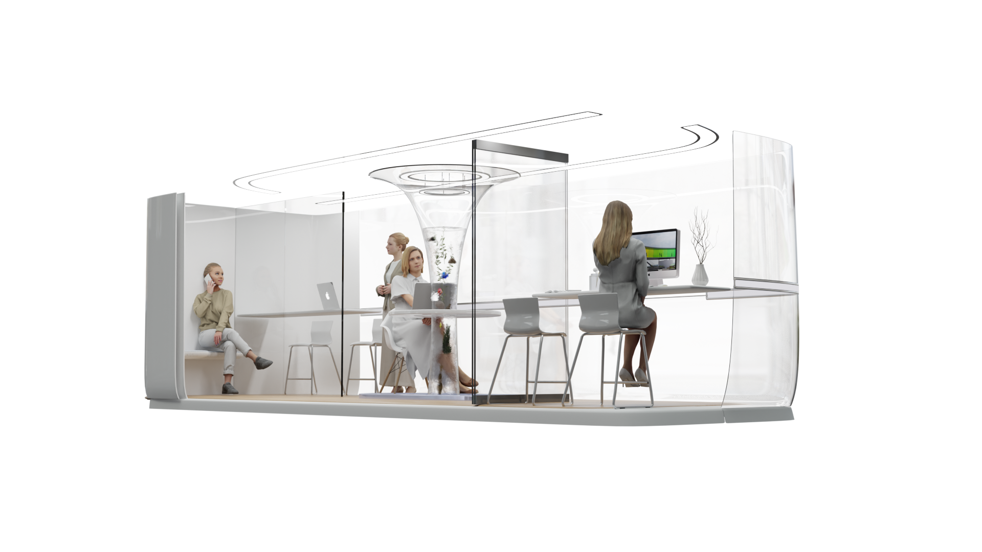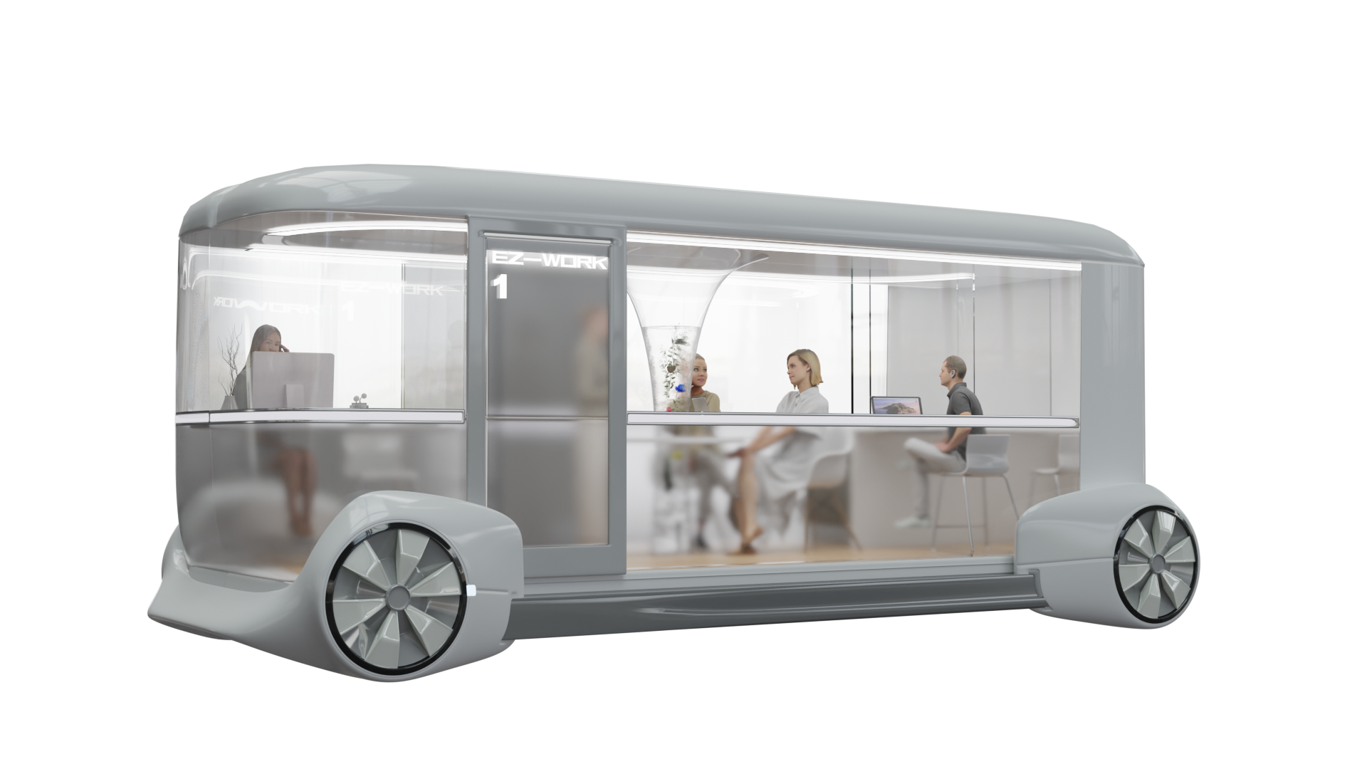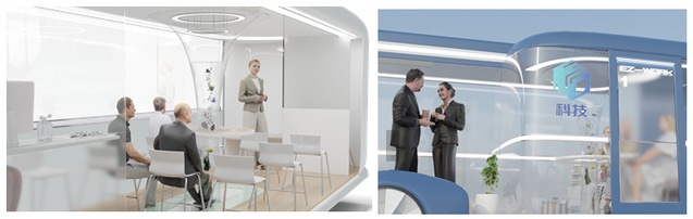 3.车内办公空间模块化:通过不同的办公模块,自由形成满足不同人数的办公需求。