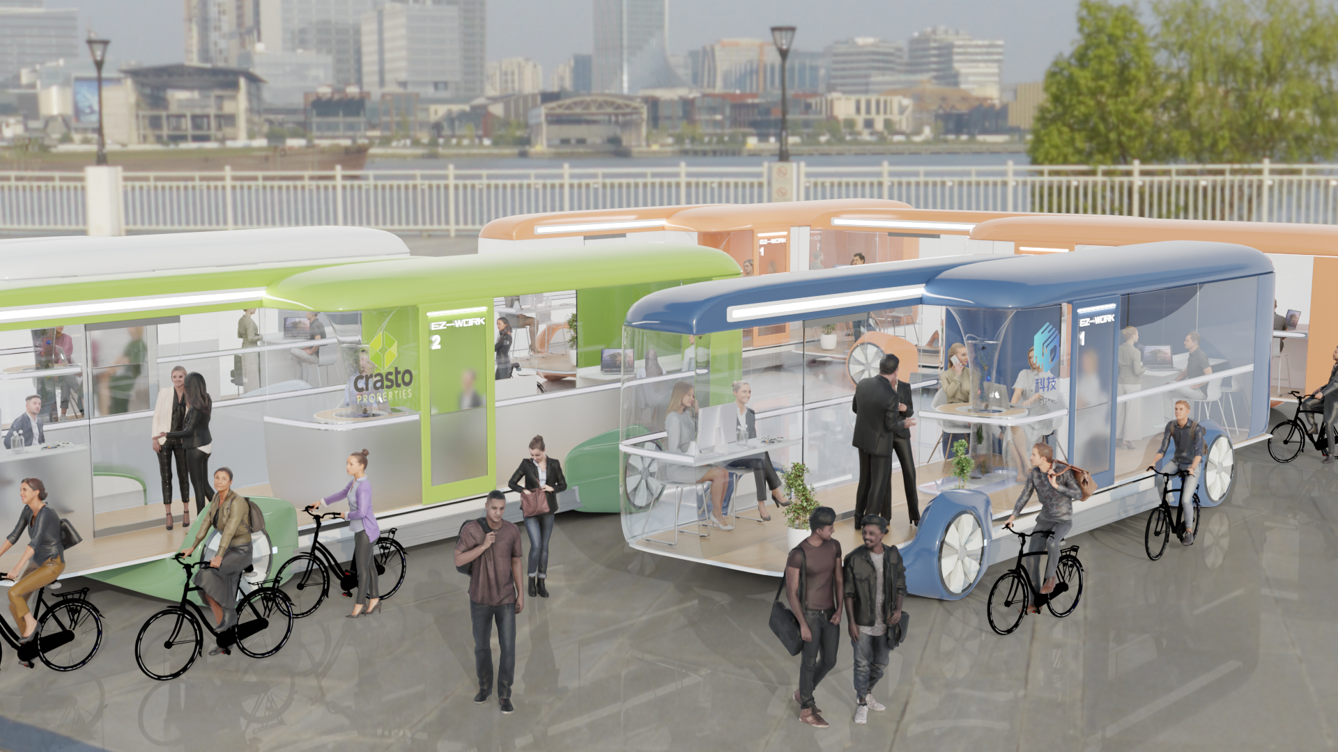 2.城市卫星区协同办公:建立卫星办公区,覆盖城市的生活区以及边郊区,释放城市中心通勤工作压力。由于可移动性,可以极大的减少办公楼的建设成本。