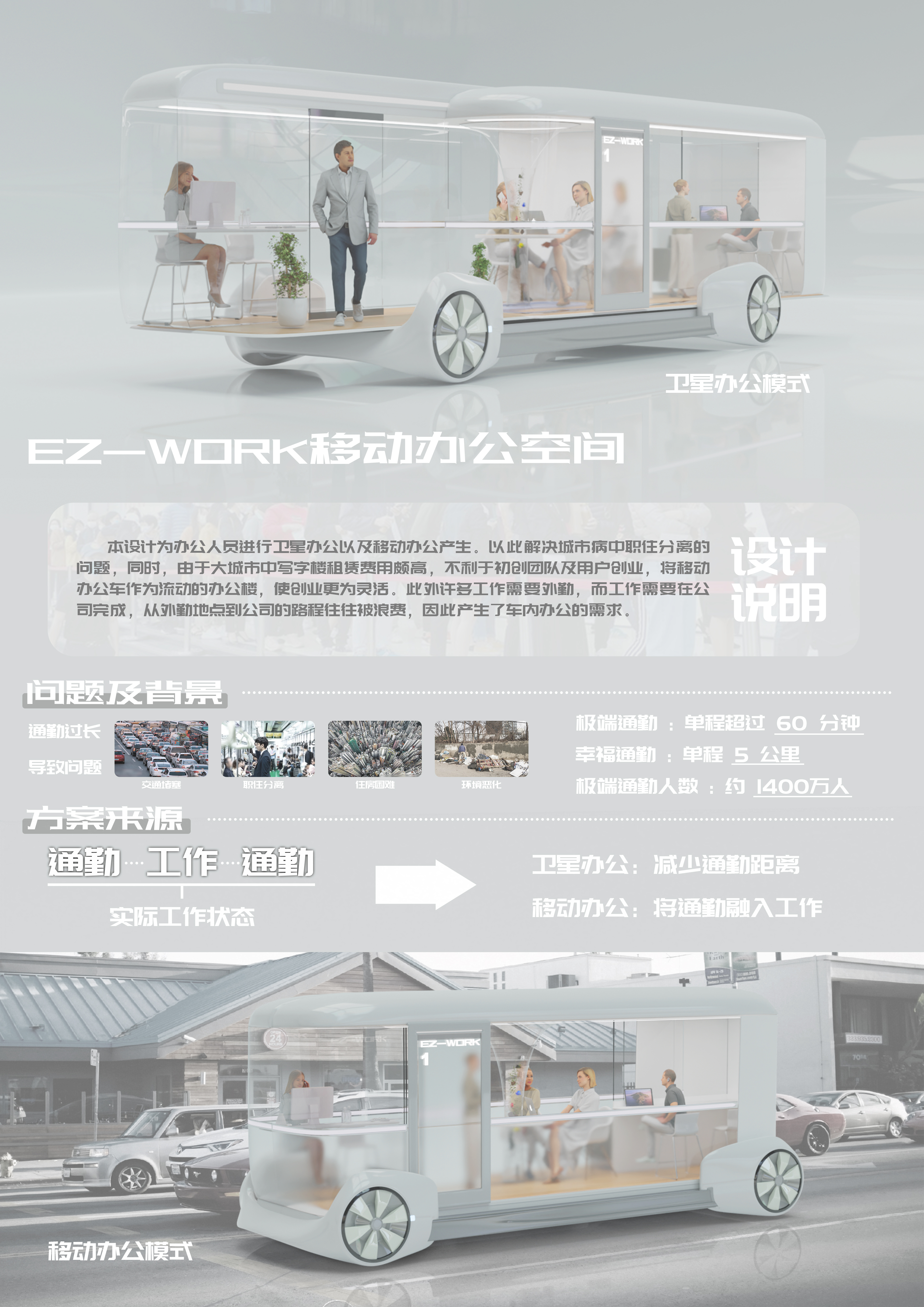 此次公司入选的“EZ-WORK移动办公空间”作品,由304永利集团高瞩教授团队设计。本设计为办公人员进行卫星办公以及移动办公产生。以此解决城市病中职住分离的问题,同时,由于大城市中写字楼租赁费用颇高,不利于初创团队及用户创业,将移动办公车作为流动的办公楼,使创业更为灵活。此外许多工作需要外勤,而工作需要在公司完成,从外勤地点到公司的路程往往被浪费,因此产生了车内办公的需求。同时产品具有以下创新点: