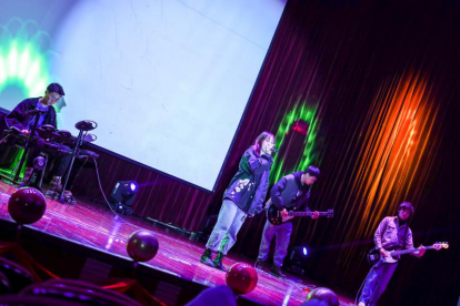 晚会分为三个篇章,第一篇章:保持奋进姿态。公司白日梦想家乐队带来歌曲《Ihatemyselfforlovingyou》点燃了现场的氛围。