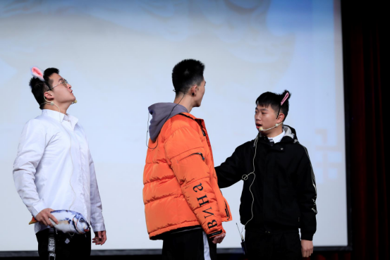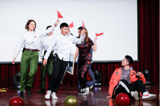 为了给祖国70周年的献礼,2019级新生给同学们带来了情景短剧《辉煌走过70年》,以男主角在博物馆的奇妙经历为大家展现了开国大典、雷锋精神、原子弹爆炸、港澳回归、08年北京奥运会、22年冬奥会等令国人无比激动自豪的时刻,同时演员们幽默风趣的台词也赢得了阵阵笑声。