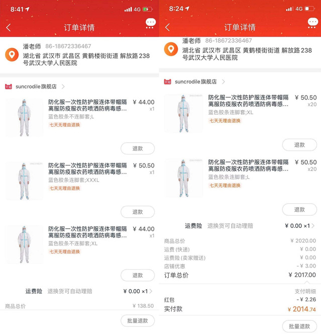 “新春佳节,病魔袭来,人们都避之不及,医护人员却迎面出击。他们柔弱的身躯担负重任,在救死扶伤的同时,却也在受到病魔侵袭。面对缺医少药的情况,我不懂医,但是我可以为医护人员捐赠防护服,希望防护服能够代替我保护他们!”倪云朔同学说到。在病魔大军面前,千万家庭的心随着武汉新增病例的上升日益沉重,倪云朔也不例外。每天早上醒来的第一件事便是查询武汉疫情情况。在确认募捐渠道后,她毅然购买了43套防护服寄往武汉大学人民医院。