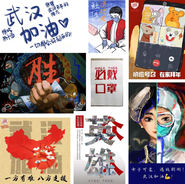 2月初,公司6名同学及党员陆尧、冯心成、岳延、曹正辉、王文 强、金鑫组成团队,响应国家号召依法、规范、有序的在线上开展 “为武汉加油”主题公益设计作品征集活动。并联系各大自媒体平台,出于公益的目的展示作品。用自己独有的方式扩大疫情宣传力度,招募更多艺术人才响应国家号召,让大家团价一心,支持国家早日战胜疫情。