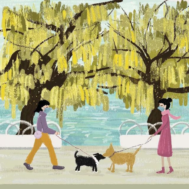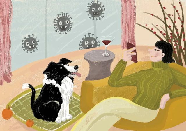 在本书的 “居家隔离”板块中,陆涵之把自己这几周在家隔离的真实状况画了进去,并把自己的“家人”——边境牧羊犬“coco”带到插画中。她说:当这本书的PDF电子版在网络上发送给全上海市民的时候,朋友和同学们都来问我“这是你画的吗?里面有coco!” 她开心地说:“这是我负责板块中有趣的一个点,艺术源于生活,我的生活塑造了我的画风。”而宠物的出现,也为插画中增添了更多吸引人地温馨细节。