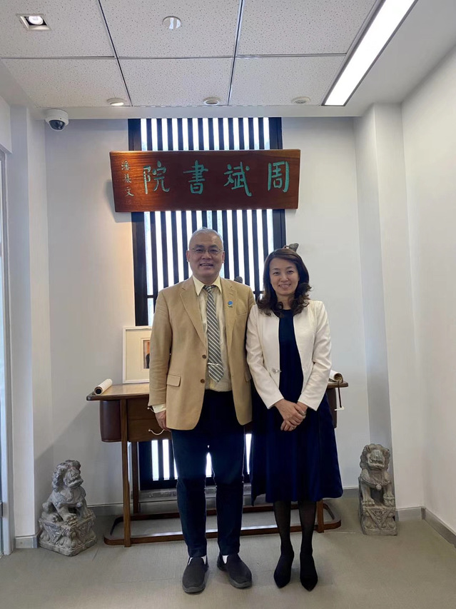 在交流中,公司党委书记袁蓉和周斌教授分别就塔建国际平台、学科的发展方向、文化产业与国际传播等所需突破的瓶颈、亟待解决的问题等深入交流了意见和看法。