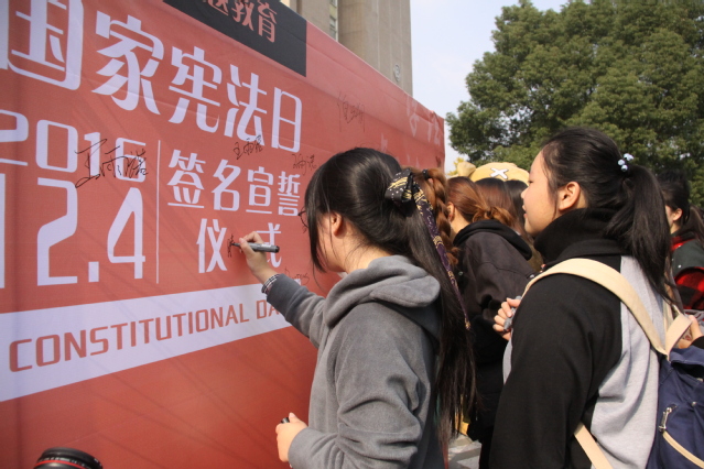 宪法作为我国的根本大法,作为当代老员工对于尊重宪法、维护宪法、自觉遵守和实施宪法有着义不容辞的责任。为了深入学习宣传宪法,12月5日,304永利集团在教学楼开展 “国家宪法日”宣誓签名仪式。