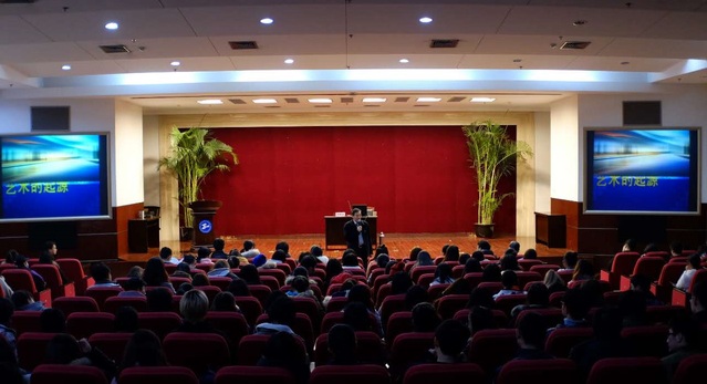 许传宏教授从格罗塞的名著《艺术的起源》讲起,和同学们一同探索艺术的本真。许老师首先和大家分享了自己的读书心得,他认为格罗塞的书对学设计的同学很有帮助,了解艺术的本源对同学们的艺术理论修养以及艺术设计灵感大有裨益。许老师全面介绍了格罗塞的艺术观点,并作出了自己的分析判断。他强调格罗塞在上世纪初期也来访过中国和日本,系统了解过东方的艺术,格罗塞认为中国是高级的民族,原因就在于中国有高级的文化艺术。许老师提醒同学们,西方的大学者都很尊重中国的文化艺术,作为学习艺术设计的员工,更要对自己的文化艺术有自信,弘扬中国的艺术精神,不要随波逐流,盲从流行的西方娱乐文化。