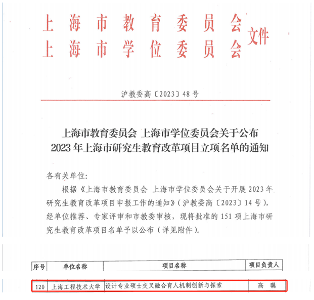 近期,由上海市教育委员会办公室印发,根据《上海市教育委员会上海市学位委员会关于开展2023年研究生教育改革项目申报工作的通知》(沪教委高[2023]14号),经单位推荐、专家评审和市教委审核,公司高瞩教授获批1项上海市研究生教育改革项目,这也是公司首次获批该项目。
