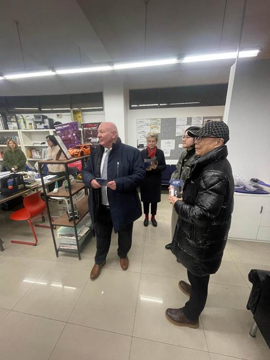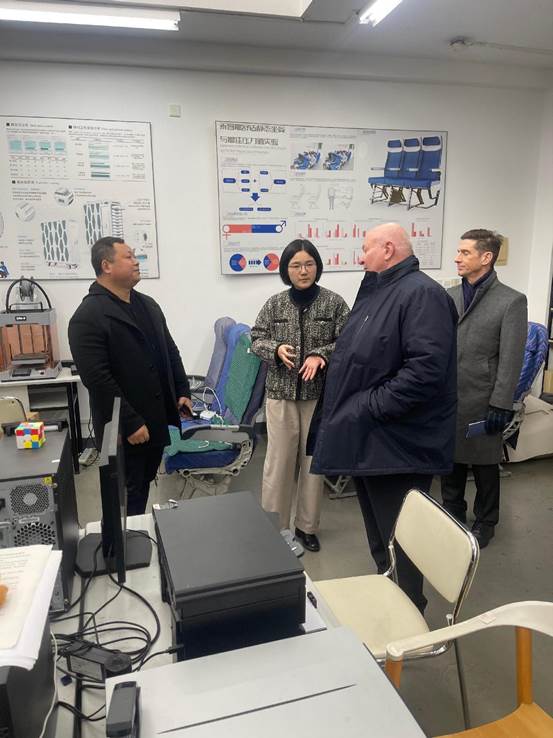 Professor Gao Zhu, Dean of the School of Art and Design, extended a warm welcome to President Berg and his delegation. He led the guests on a field visit to the lobby on the first floor of the School of Art and Design, the Vehicle Styling Design Laboratory, the High-End Aviation Equipment Design Laboratory, and the College of Fashion Consumer Products Design Industry. He gave a detailed account of the achievements made by the School of Art and Design in teaching and research in recent years. Finally, all the guests took a group photo in the lobby on the first floor of the School of Art and Design.