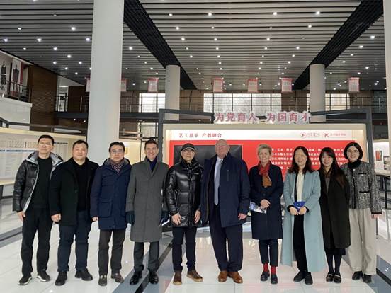 On February 25, President Berg of Deggendorf Institute of Technology, Germany, and his delegation visited the School of Art and Design. They were received by Wang Qin, Director of the International Cooperation and Exchange Office; Zhou Xiaozhou, Deputy Director of the International Cooperation and Exchange Office; Professor Gao Zhu, Dean of the School of Art and Design; Professor Xu Jianghua, Vice Dean of the School of Art and Design; Mr. Zheng Chao, Director of the Design Practice (Experiment) Center; and Associate Professor Chen Lu, International Exchange Secretary.