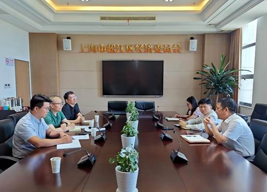 On July 22, Gao Zhu, Dean of the School of Art and Design, Liu Jiang, Deputy Secretary of the Party Committee of the School, and Chen Lu and Liu Wei, representatives of young teachers, visited and exchanged ideas with the Songjiang District Economic Commission. Li Lei, Director of the Songjiang District Economic Commission, Liu Yong, Deputy Director, and Xu Zhishan from the Service Industry Promotion Section received the delegation from the school.