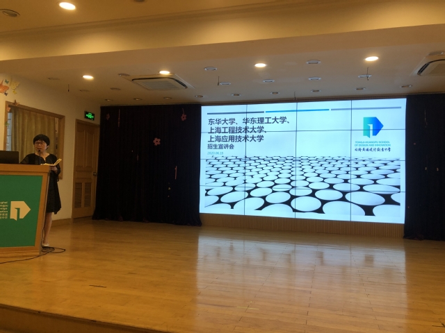 6月19日下午12:30分,首先由上海市同济黄浦设计创意中学张咏梅董事长致欢迎辞,张董事长主要对上海设计类Ⅳ类高峰学科高校各位领导老师的到来表示欢迎,之后向各高校介绍了同济黄浦设计创意中学发展历程、目前相关设施以及建设情况,最后,张董事长再次对各位高校领导老师在百忙之中,到同济黄浦设计创意中学做专业介绍会表示由衷的感谢。之后分别由东华大学、华东理工大学、上海工程技术大学、上海应用技术大学分别介绍各校团队情况、实验室建设、专业的培养方向、特点进行介绍和说明。
