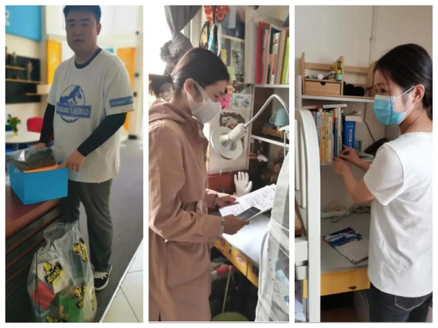 对于未能返校办理离校手续的员工,辅导员老师们一一对接,帮助同学们整理寝室物品和顺利办理手续。