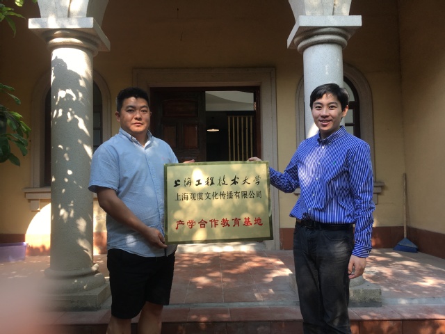 最后,艺术设计公司吕宁副书记和方钊总经理为公司产学合作教育基地上海观虞文化传播有限公司进行了揭牌。双方都表达了长期合作的心愿。